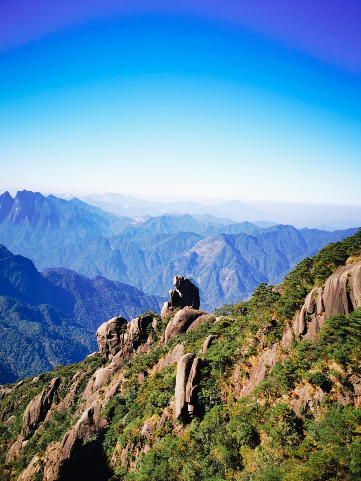 俗话说的好,“三清仙境不寻常”,今天格外期待这座“天下奇山”。缆车至半山腰,导游交代清楚后,正式开启了今天的爬山之旅。站在缆车平台上,放眼望去,朝下看是万丈深渊,朝上看是万里晴空。